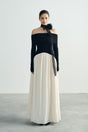 This elegant off-shoulder maxi dress features a refined mixed-fabric design that balances structure and softness in all the right places. The self-adjustable off-shoulder neckline lets you tailor the fit to your preference—wear it neatly in place for a polished look or slightly relaxed for an effortless feel. The upper body is crafted to hold its shape beautifully with a smooth, soft touch and comfortable stretch, while the lower part drapes lightly with a distinctive subtle texture for a modern finish. Breathable and comfortable with a flattering flow, it’s an easy choice for dinner plans, events, and elevated everyday wear.